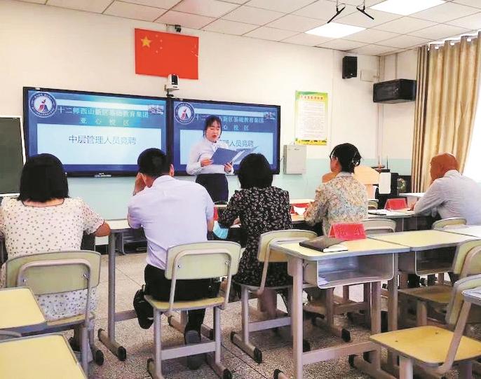 十二师西山新区基础教育集团亚心校区中层管理人员竞聘现场(资料图片)。 十二师教育局 供图