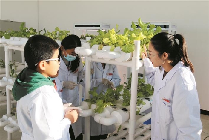 在十二师西山农场学校无土栽培实验室,教师为学生们讲解无土栽培知识(资料图片)。 兵团日报全媒体记者 韩兆辉 摄