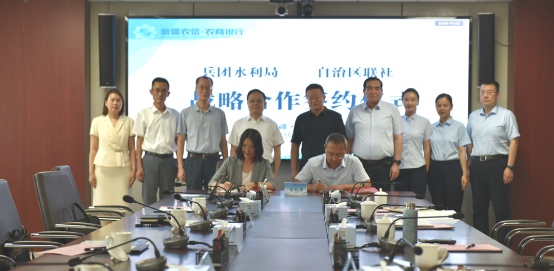 8月26日,新疆生产建设兵团水利局(以下简称兵团水利局)与新疆农村信用社联合社(以下简称自治区联社)举行战略合作协议签约仪式。兵团水利局党组书记、局长孙录勤,自治区联社党委书记、理事长郑育峰出席签约仪式并致辞。兵团水利局党组成员、副局长王金梅,自治区联社党委副书记、主任白雪原代表双方签约。